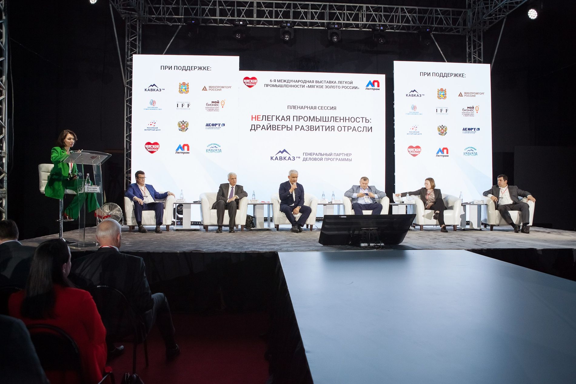 В ключевой пленарной сессии “НЕлегкая промышленность: Драйверы развития отрасли” приняли участие заместитель министра экономического развития РФ Сергей Макаров; директор департамента легкой промышленности Минпромторга РФ Вера Хмырова; генеральный директор “Кавказ.РФ” Андрей Юмшанов; заместитель полномочного представителя президента России в СКФО Владимир Надыкто; заместитель председателя правительства Ставропольского края Николай Афанасов; председатель совета директоров ООО МДЦ “Мягкое Золото” Арон Мардахаев.